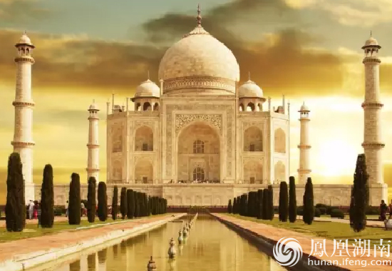 泰姬陵最引人矚目的是用純白大理石砌建而成的主體建筑,皇陵上下左右工整對(duì)稱,中央圓頂高六十二米,令人嘆為觀止。泰姬陵的前面是一條清澄水道,水道兩旁種植有果樹和柏樹,分別象征生命和死亡。