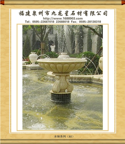 石雕噴泉(水缽),風水球,鴻福輪,大水發(fā)園林水景,石雕小橋流水,水榭亭臺等東西方園林景觀石雕花缽亭臺。藝術噴泉光潔細膩、亮麗迷人;除具有極高的觀賞和審美價值外,還可在水流往復噴射的過程中,將空氣中的塵埃粉粒吸附于水中沉淀,從而將空氣凈化,水分揮發(fā)又能對空氣進行有效加濕,改善和潤澤氣侯;它在汲取了大自然之精華的基礎上結合尖端放電原理,添加有效裝置,使空氣中的氧電離,自動產生“空氣中的維生素”----負氧離子,維護人們身心健康。