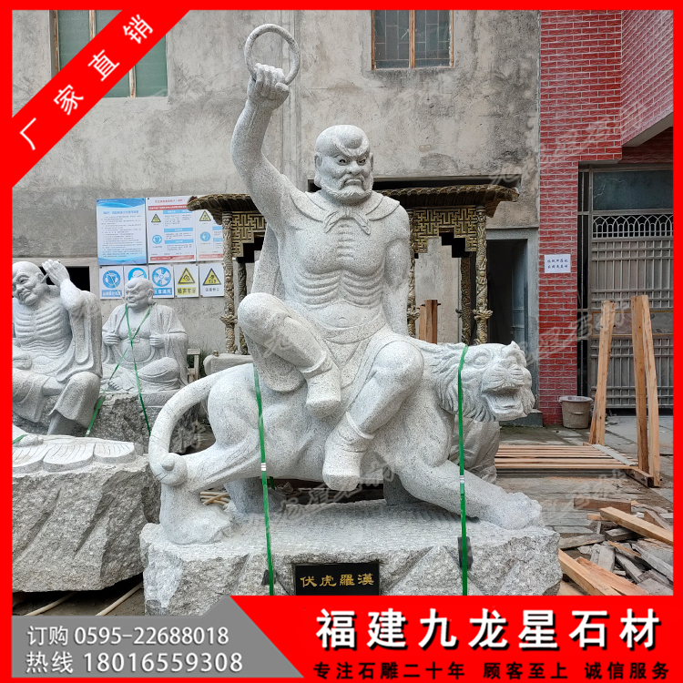 看著每一尊寺院十八羅漢石像,不得不感嘆古人的智慧啊。這些被珍藏的十八羅漢塑像,保存的如此完好,這還是要?dú)w功于,十八羅漢塑像是采用的天然石材手工雕刻而成,純天然的石頭在大自然中被人們開鑿來制作成十八羅漢石像作品,這樣的一整套十八羅漢作品,不僅帶著天地精華,也將人們的智慧和工藝賦予其中,石刻十八羅漢就是最好的安排了吧。古代十八羅漢帶有歷史沉淀的韻味,具有很高的研究價(jià)值。而現(xiàn)代十八羅漢雕刻為了能有這樣的一份感情,開始了對石雕18羅漢仿古做舊的技術(shù),也更符合一些古建筑,古剎寺院去擺放仿古代石雕十八羅漢擺件。
