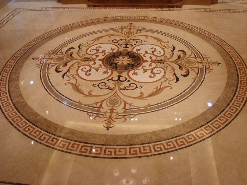 大理石拼花石材拼花,其實可以看做是馬賽克工藝的一種發(fā)展和延伸,是馬賽克工藝和新的加工工藝和技術(shù)相結(jié)合的而衍生出的新的石材產(chǎn)品。像早期的石材拼花,主要是石材板材類產(chǎn)品的拼組,這可以看成是放大版的石材馬賽克,而后期由于水刀技術(shù)的應(yīng)用和加工精度的提升,石材拼花把馬賽克的鑲嵌工藝發(fā)揮到了極至,形成了自己獨特的風(fēng)格。不過在國外石材拼花還是屬于石材馬賽克的范疇的。