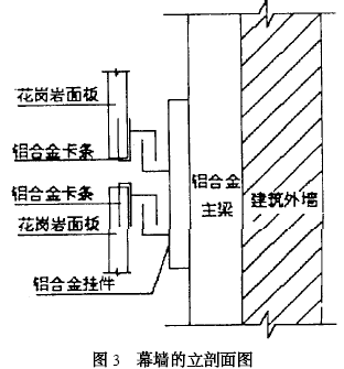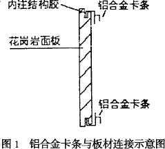 在本工程中,石材部分的加工工作在現(xiàn)場完成,右材采用的是意大利月亮白花崗巖板材,結(jié)構(gòu)膠采用的是由美國GE公司生產(chǎn)SSG-44DO型硅酮結(jié)構(gòu)密封膠。