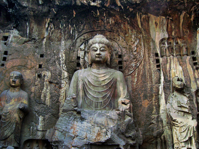 盧舍那大佛造像是河南洛陽龍門石窟造像中的一顆明珠,取材于佛教。眾所周知,佛教由釋迦牟尼創(chuàng)立于古印度,于兩漢之間開始傳入我國,在魏晉南北朝時期得到了初步的繁榮發(fā)展,出現了大量巨大的佛教造像,如云岡大佛等。唐代詩人杜牧《江南春》中的詩句“南朝四百八十寺,多少樓臺煙雨中”,從中可以看出當時佛教的興盛程度。