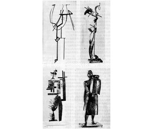 岡查列茲卻為擺脫畢加索的影響,找尋新的表現(xiàn)方式而努力。他宣稱:“借用新的手段,向空間凸出,用空間來描繪它;利用空間,并在空間進行設計,這樣,空間就好象是一種新發(fā)現(xiàn)的材料——這便是我的全部努力”。(5)