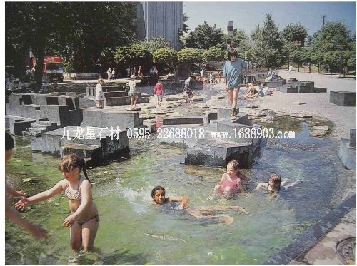 約阿希姆.施梅托在柏林市中心的設計也是一個給人留下深刻印象的作品。他利用高程的變化,造成空間形體的豐富變化,而且還形成多種形式的水體造型,將塑造的、建筑的、環(huán)境的以及自然的復雜要素揉合在一起。他對造型的設計、符號的運用、材質的駕馭都別出心裁,足以令人流連忘返。