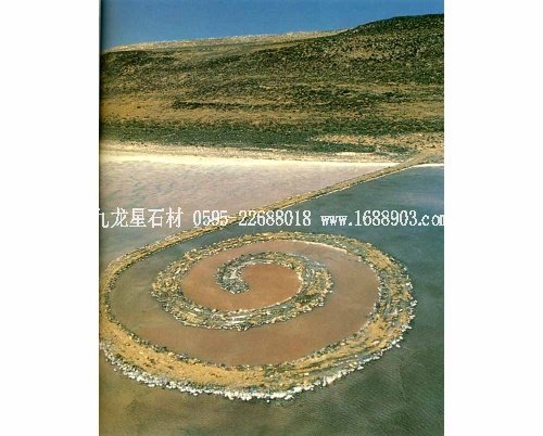 雕塑家羅伯持·史密森以最有震撼力的方式表達了他的這種天才藝術家思想,在美國猶他州偏遠的大鹽湖筑造了一個名為《螺旋防波堤》的直徑為160英尺、螺旋長1500英尺的巨大旋轉空間。他借助大型機械,用當?shù)氐暮谏鋷r石、以堆積的這種松散方式塑造了他和大鹽湖的偉大傳奇。