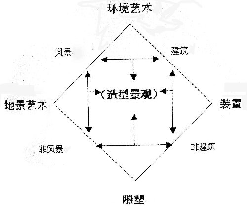 中心交匯處則潛藏著“造型景觀”這個藝術綜合體的新概念。而景觀造型藝術就是一種強調參與性、令觀眾獲得獨特體驗的藝術。這反映出造型藝術在后現(xiàn)代語境下的一種必然趨勢,而且這種趨勢必定是由雕塑的發(fā)展所產(chǎn)生的極大推動力所致。