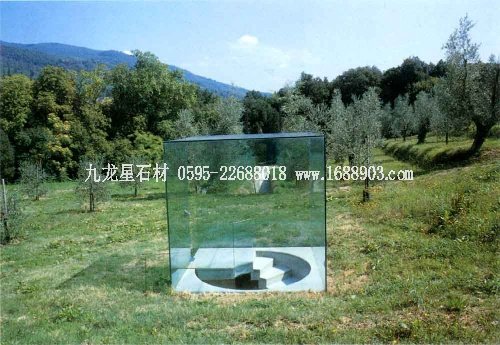 雕塑景觀的樂趣還在表現(xiàn)方式的不同,同時歷史和文化差異也給作品帶來獨特的魅力。如井上武吉在高利收藏園創(chuàng)作的作品,從神社祭祀活動受到啟發(fā),它采用了線、下沉的面、通道以及玻璃材質的圍合等對自然空間限定的方式,造成了一個可以穿行的神秘的景觀作品。將黑暗與光明、神圣與離奇貫穿其中。當人們游行而過時,會獲得一種解脫與再生的神奇體驗。