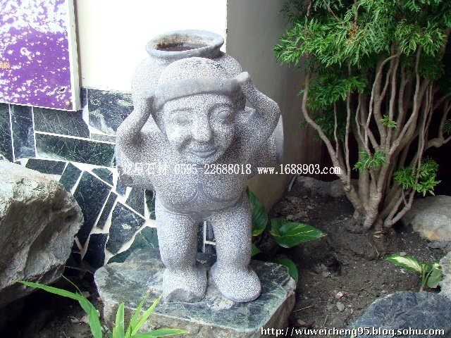 ①大理石加工廠門前花園里的石雕,既顯示一下該廠的雕刻技術,又可以和園里的景色匹配.