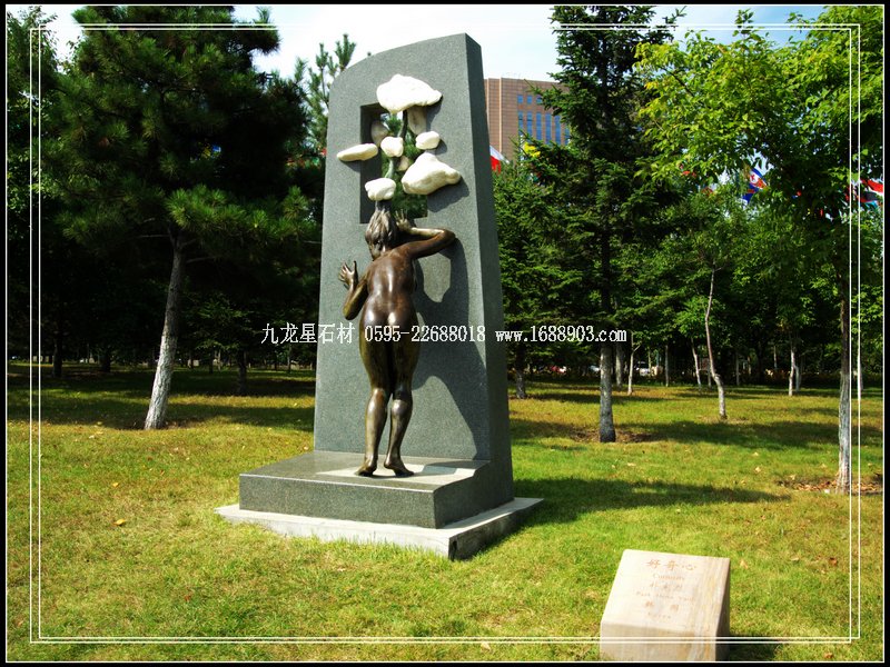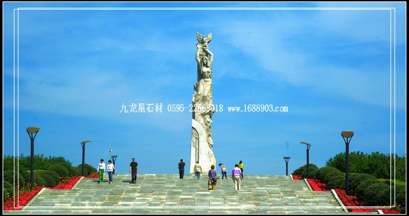 完美體現(xiàn)“友誼·和平·春天”的主題雕塑塔,由國內(nèi)著名雕塑大師葉毓山、潘鶴、程允賢、王克慶、曹春生共同創(chuàng)作完成。塔高29.5米,由少女、鮮花與和平鴿組成,周圍環(huán)繞著反映五大洲民族風(fēng)情的五組鑄銅人物雕像和漢白玉浮雕,造型精美,氣勢壯觀,榮獲第三屆全國城市雕塑建設(shè)成就展優(yōu)秀作品獎。