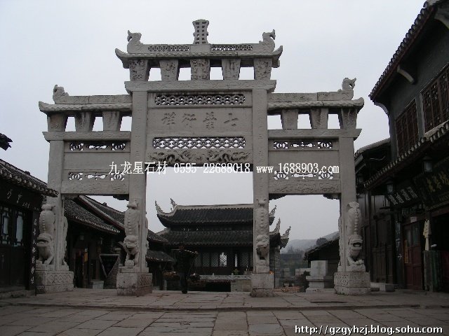 上網(wǎng)查閱了一下關(guān)于牌坊的資料:牌坊,是封建社會(huì)為表彰功勛、科第、德政以及忠孝節(jié)義所立的建筑物。牌坊就其建造意圖來(lái)說(shuō),可分為四類:一是功德牌坊,為某人記功記德。 二是貞潔道德牌坊,多表彰節(jié)婦烈女,三類是標(biāo)志科舉成就的,多為家族牌坊,為光宗耀祖之用。四類為標(biāo)志坊,多立于村鎮(zhèn)入口與街上,作為空間段落的分隔之用。
