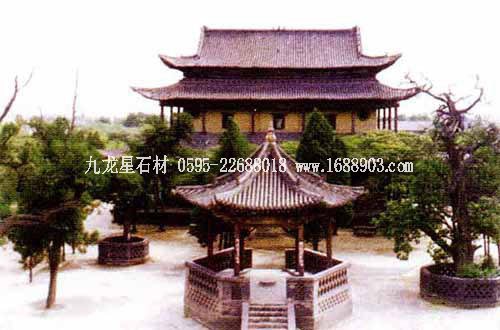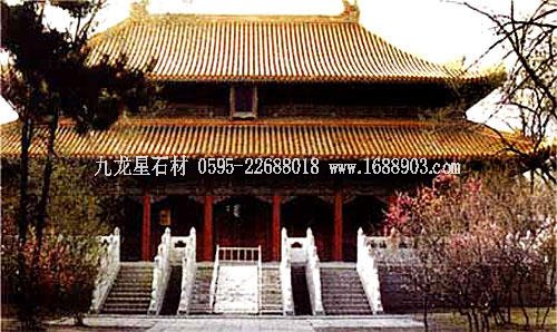 孔廟位于山東省曲阜市南門內(nèi),是歷代祭祀孔子的廟宇,建筑規(guī)模宏大,雄偉壯麗。其平面呈長方形,總面積327.5畝,南北長1120米。整個孔廟的建筑群以中軸線貫穿,左右對稱,布局嚴(yán)謹(jǐn),共有九進(jìn)院落。全廟共有五殿、一祠、一閣、一壇、兩堂、十七碑亭、五十三門坊,共計有殿廡四百六十六間??讖R內(nèi)最為著名的建筑有:欞星門、二門、奎文閣、杏壇、大成殿、寢殿、圣跡堂、詩禮堂等。杏壇,傳為孔子講學(xué)處,壇旁一株古檜,稱“先師手植檜”;大成殿為孔廟的主殿,殿內(nèi)正中奉祀孔子塑像,兩旁為4配和12哲的塑像;東西廡殿原供孔子弟子及儒家歷代先賢;故宅井后的“魯壁”為秦始皇焚書坑儒時,孔子第九代孫孔鮒收藏《尚書》、《禮記》、《論語》、《孝經(jīng)》等書的夾墻??讖R與孔府、孔林并稱“三孔”,是中國現(xiàn)存最大的四大古建筑群之一。