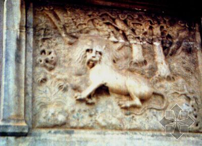 碧云寺石坊屏風(fēng)的芯板刻有佛像、石獅。牌樓石柱滿雕云紋,柱頂為石獸。夾桿抱鼓石,雕刻細(xì)膩渾圓大方,在北京的抱鼓石中堪稱第一。樓頂?shù)耐唛芗岸饭熬鶠檎麎K漢白玉雕刻而成。其雕刻技法和風(fēng)格與金剛寶座塔渾然一體相得益彰.