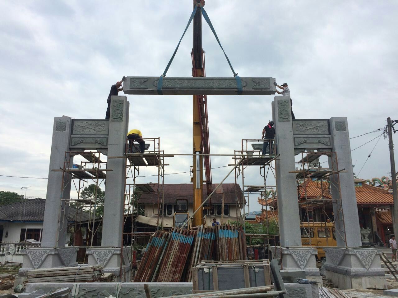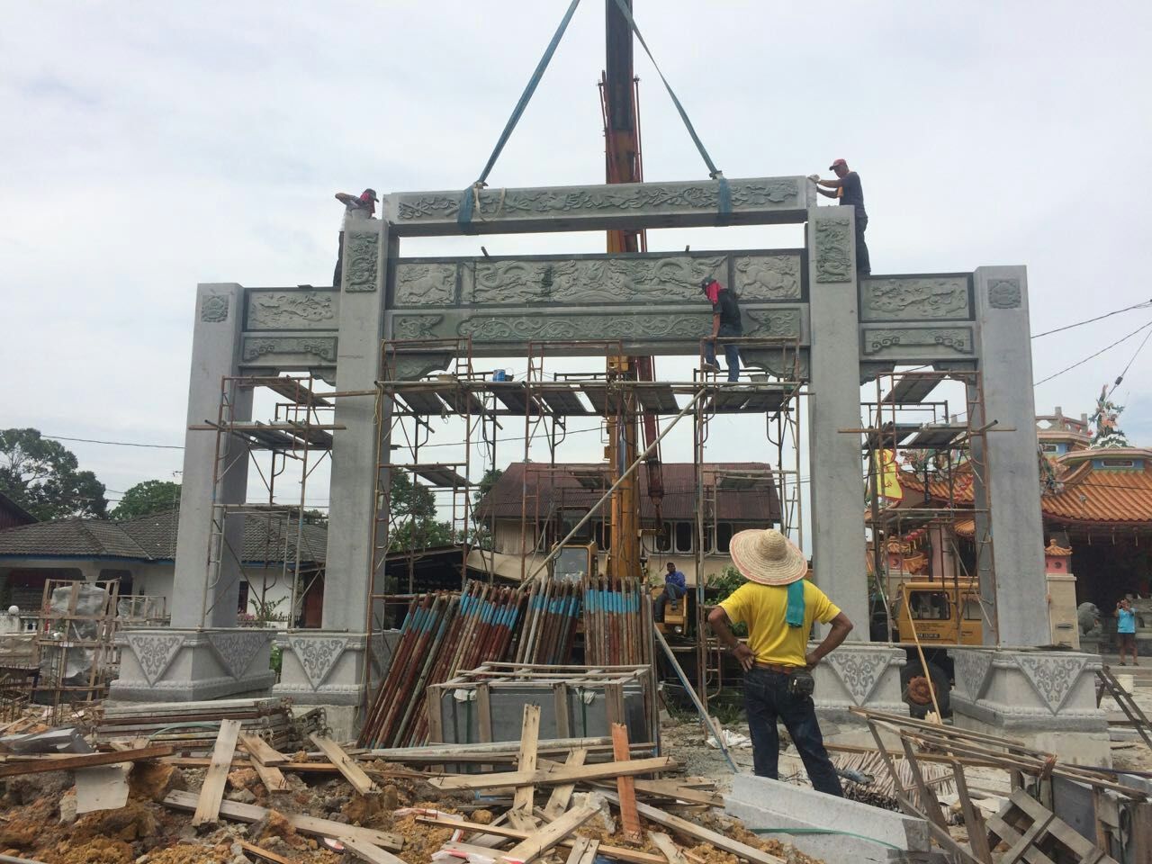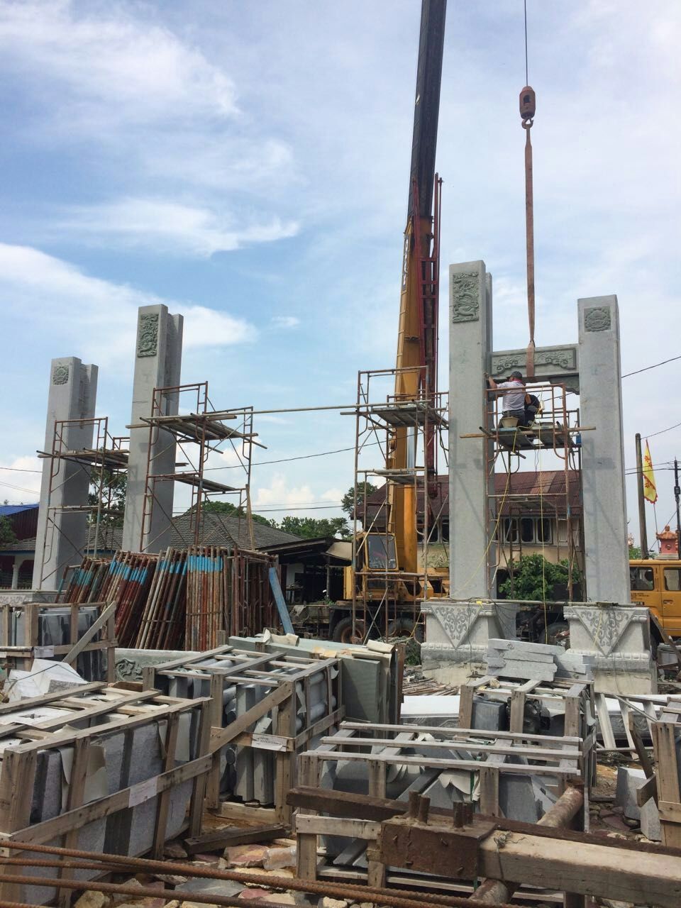 本公司的石雕牌坊(馬來(lái)西亞客戶)安裝中