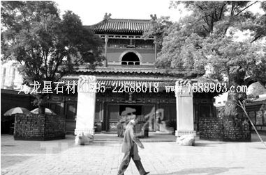 進入由三個拱形小門組成的“山門”,我們就可看到左右兩側(cè)的鐘樓、鼓樓。古代有“晨鐘暮鼓”之說,太陽東升西落,所以鐘樓和鼓樓分居東、西兩側(cè)。坐北朝南的第一重大殿是“天王殿”,殿里正面供奉彌勒佛坐像,兩側(cè)為四大天王像。穿過天王殿是第二重大殿———“大覺寶殿”,迎面看到的是釋迦牟尼佛、藥師佛和阿彌陀佛。雖然第三重大殿“七寶像殿”中原來供奉的七尊佛像在“文革”間被破壞,但是現(xiàn)在供奉的移自護國寺的整樘楠木佛像,也頗具觀賞價值。