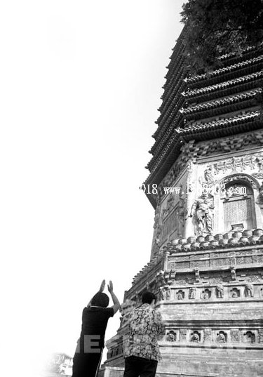 現(xiàn)在的天寧寺正在大修,平時是不開門的,記者第一次去的時候就吃了閉門羹。守門的師傅說,每逢初一和十五才會開放。