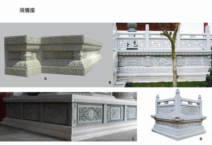 早期臺(tái)基的造型為平座式(矩形),后由于佛教的傳入,佛像下面的“須彌座”被移植過來。須彌座即須彌山,是佛教傳說中的世界中心,以須彌山作為佛像的底座以顯示佛的偉大。