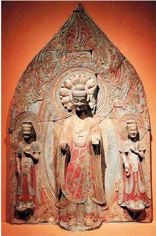 1996年,青州龍興寺遺址窯藏共出土北魏至北宋佛教造像400余尊,其中以東魏和北齊時期的數(shù)量最多。青州地區(qū)曾先后隸屬于南朝和北朝,南北文化 上的交互影響較為明顯,在公元469年北魏占領(lǐng)青州以前,青州長期隸屬于南朝,所以在造像風(fēng)格上與北朝造像有明顯的不同。青州地區(qū)佛教造像除政治沿革遺留 的影響,還應(yīng)有不同地區(qū)交流的因素。這時海路可以與東南沿海相通,笈多美術(shù)通過海路傳入也在一定程度上促進(jìn)造像樣式的形成與發(fā)展。如東晉義熙年間,法顯自印度取經(jīng)回國,返抵青州,青州長廣郡太守李巍敬信佛法,迎接經(jīng)像歸至郡治,留法顯一冬一夏,法顯所奉佛像自然是地道的笈多風(fēng)格。