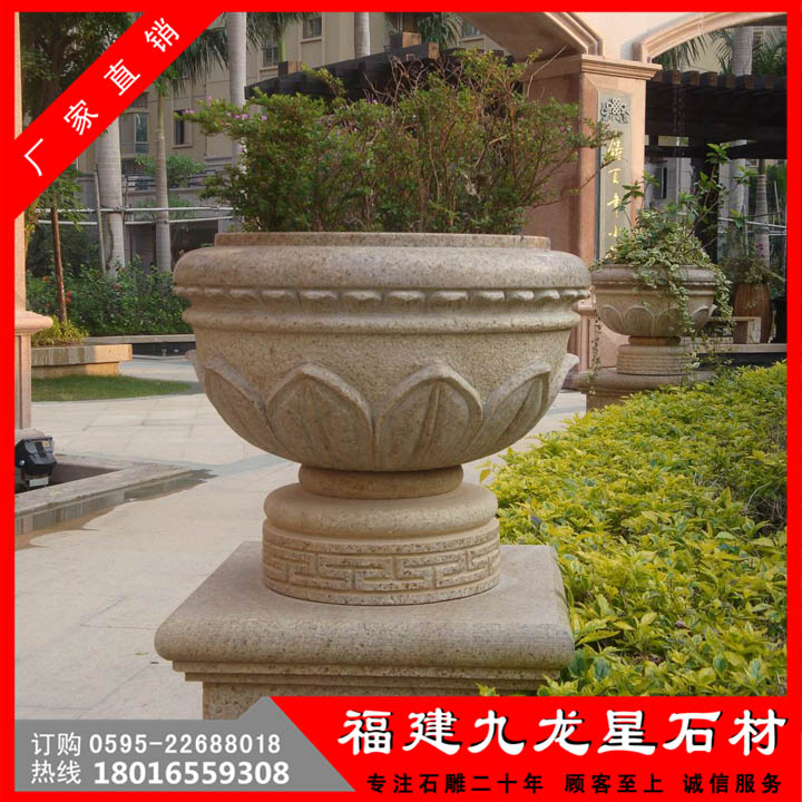 園林花缽石雕文化在中國(guó)的歷史上,有著很輝煌的歷史,它的美一直傳承到了現(xiàn)在,不僅是視覺上的享受,也是一種文化的熏陶!它采用天然石頭精雕細(xì)琢而成的石雕園林花缽。形態(tài)逼真,栩栩如生。適用于小區(qū),廣場(chǎng),園林,酒店,學(xué)校,戶外園林景觀工程等場(chǎng)所。