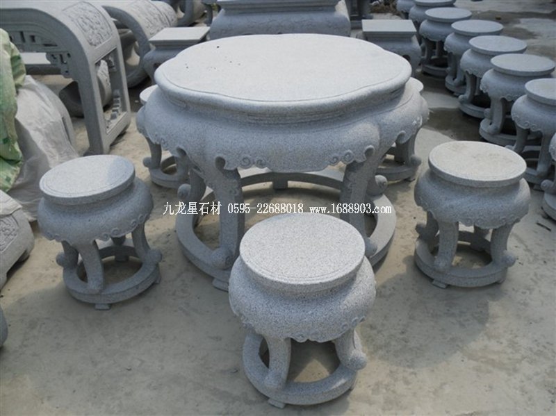 石桌椅可由各種石材雕刻:花崗巖石桌椅(黃銹石石桌椅、白麻石桌椅、芝麻白石桌椅、芝麻黑石桌椅等等)、青石石桌椅、大理石石桌椅(漢白玉石桌椅等等)、砂巖石桌椅等,還可雕刻各種造型;動物石桌椅、圍棋盤石桌椅、象棋盤石桌椅、圓形石桌椅、方形石桌椅、人物石桌椅、石靠背椅、靠背長椅等。