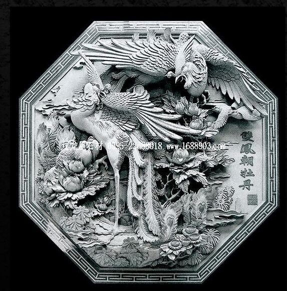 此浮雕所用材質為青石,浮雕創(chuàng)作主題取至雙鳳朝牡丹浮雕。