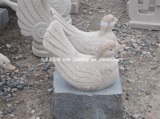 石雕鴛鴦采用整塊漳浦銹花崗巖雕刻而成,底座為福鼎黑花崗巖。